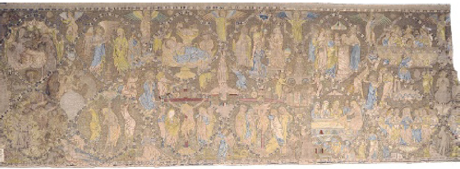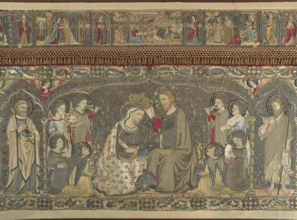 Il primo (1336) rappresenta l’Incoronazione della Vergine e risulta con disegno di tradizione fiorentina e ricamato a Firenze da Jacopo Cambi, del quale conosciamo poco, ma era tanto consapevole del valore dell’opera che stava realizzando da apporvi la sua firma.