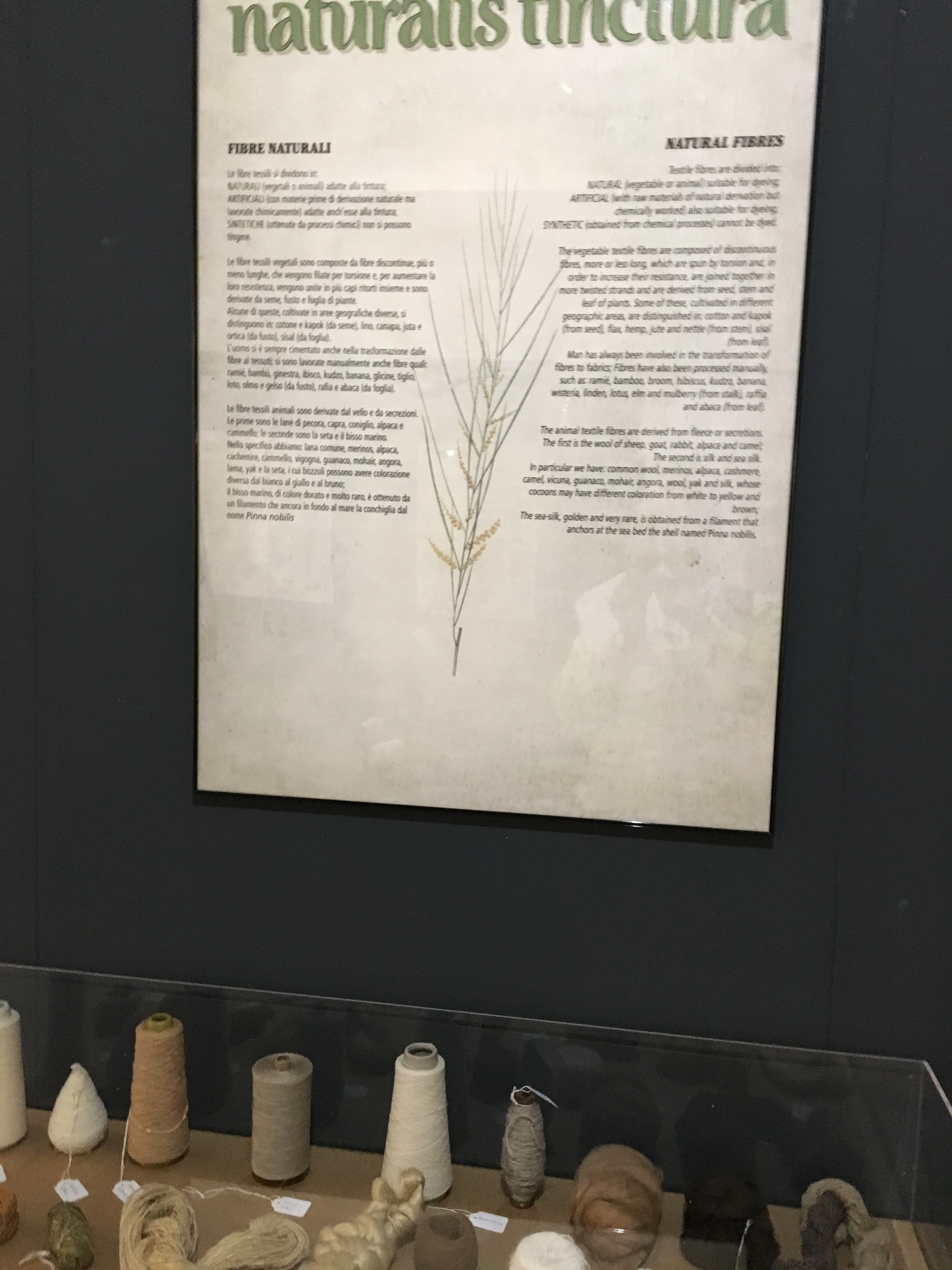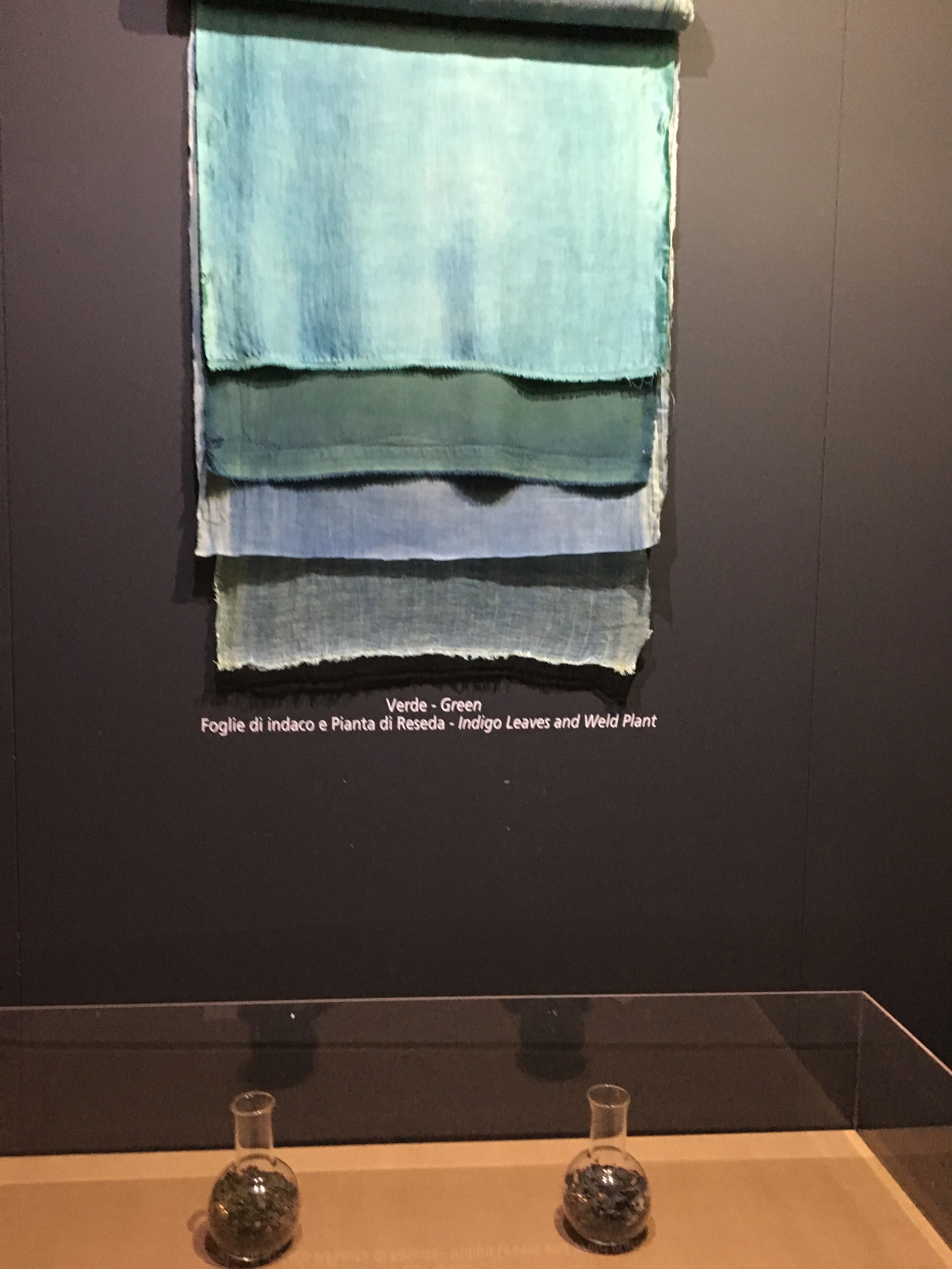 Questa mostra, ben si inserisce nel complessivo percorso didattico del Museo mentre l’apprendimento concreto delle tecniche di tintura con prodotti naturali non può che essere svolto partecipando ai corsi che si svolgono periodicamente in varie parti d’Italia ad opera di diverse Associazioni e dalla “Casa Clementina” promossa a Pettinengo (Biella) da Stefano Panconesi e Sissi Castellano.